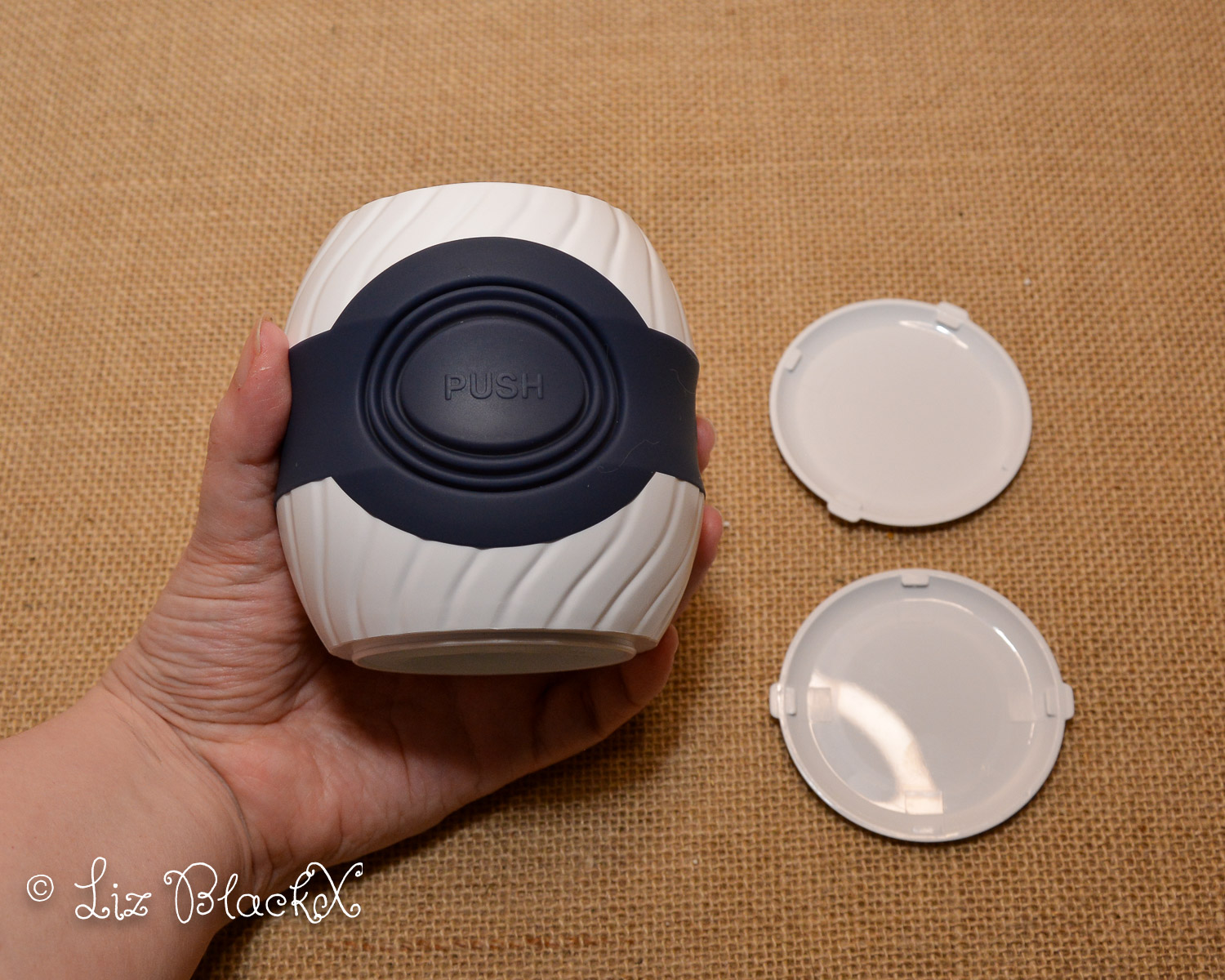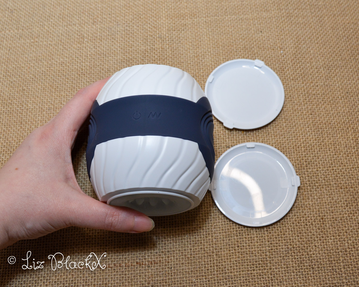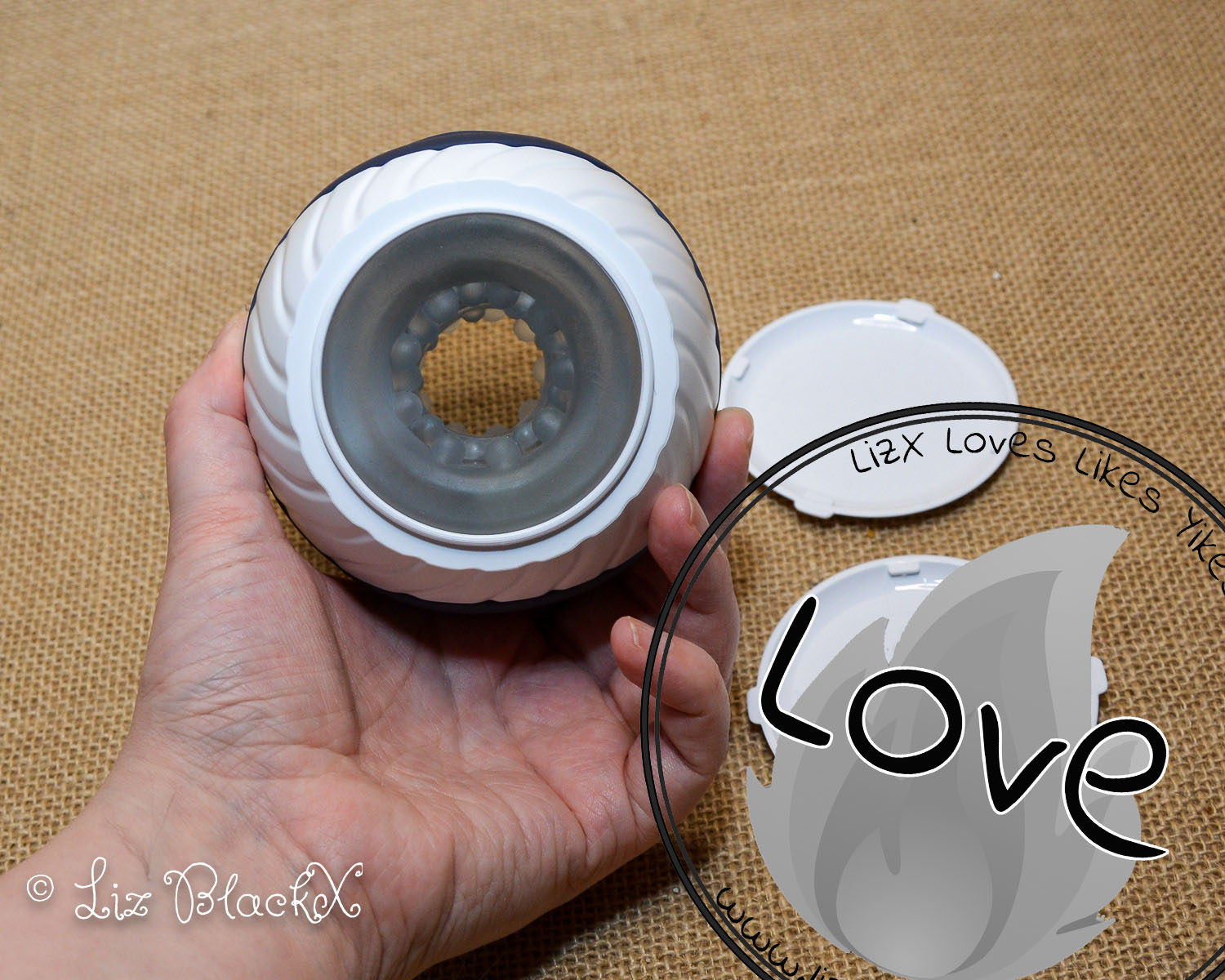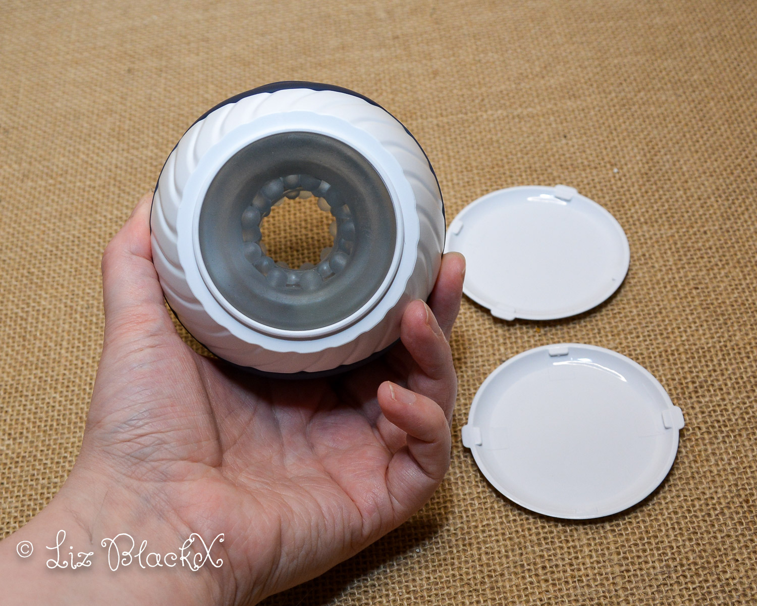 When you remove the lids from the capsule, you are greeted by a TPE sleeve which is decorated on the inside with nubs and ribs. And if that’s not enough to excite you, this toy has some hidden gems, including strategically placed silicone indent buttons labeled ‘Push’. These offer a unique sensory experience, allowing you to apply pressure for an intimate, tightening effect while exploring the toy’s stimulating interior.