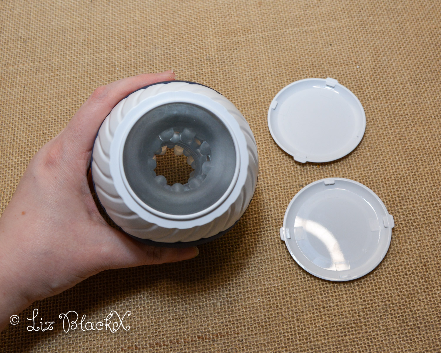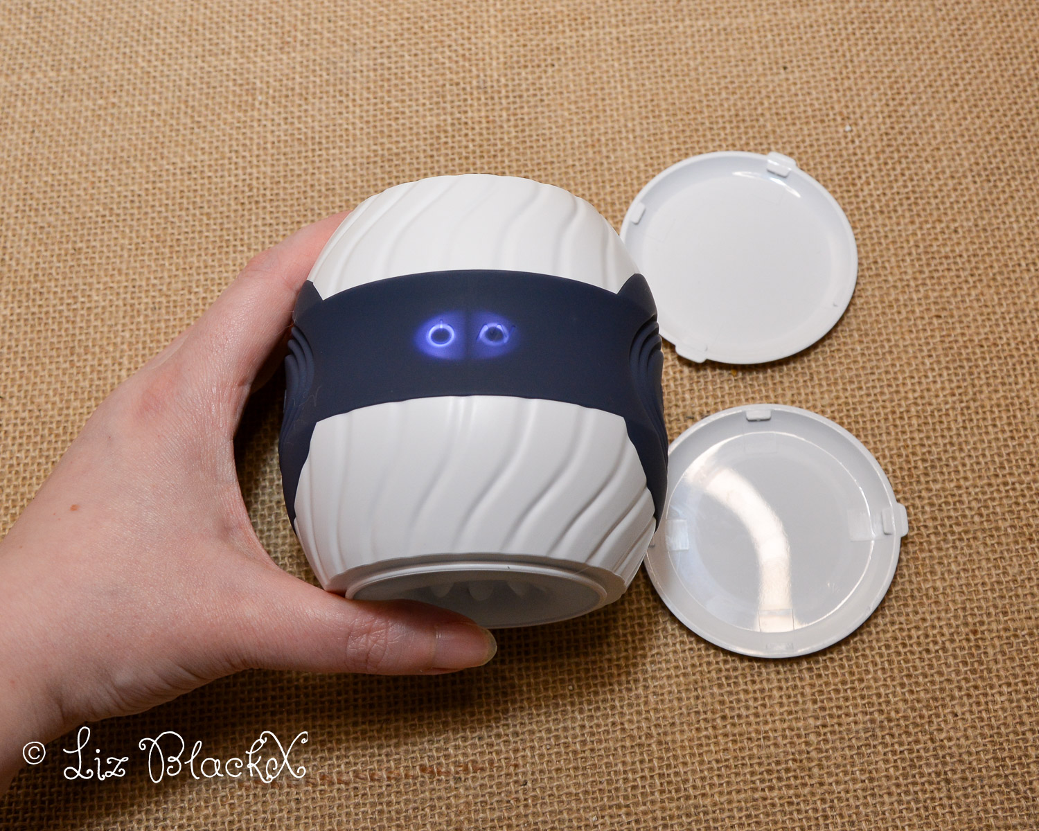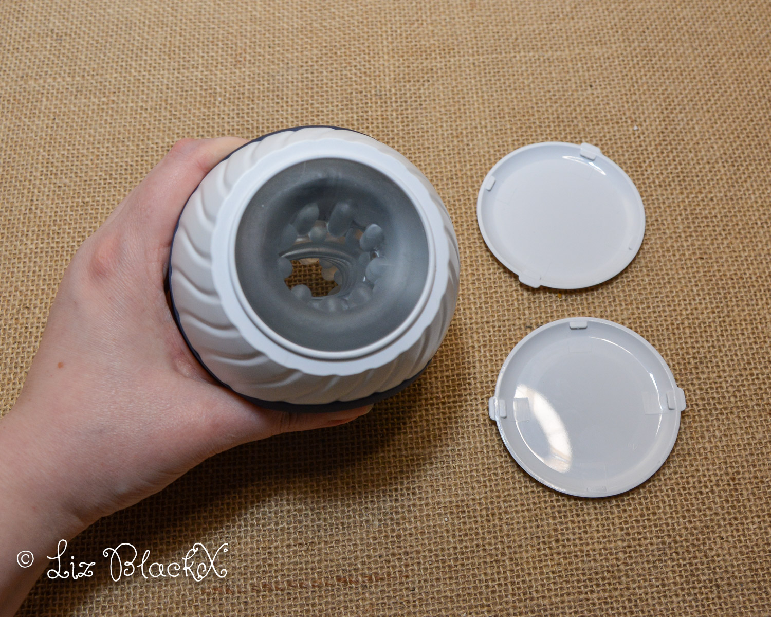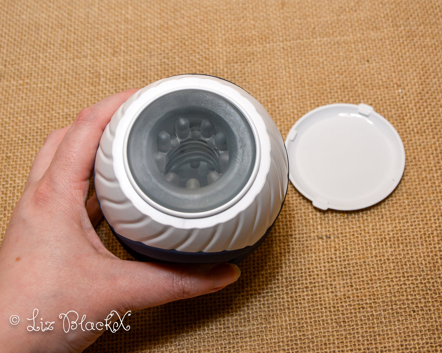 When you remove the lids from the capsule, you are greeted by a TPE sleeve which is decorated on the inside with nubs and ribs. And if that’s not enough to excite you, this toy has some hidden gems, including strategically placed silicone indent buttons labeled ‘Push’. These offer a unique sensory experience, allowing you to apply pressure for an intimate, tightening effect while exploring the toy’s stimulating interior.