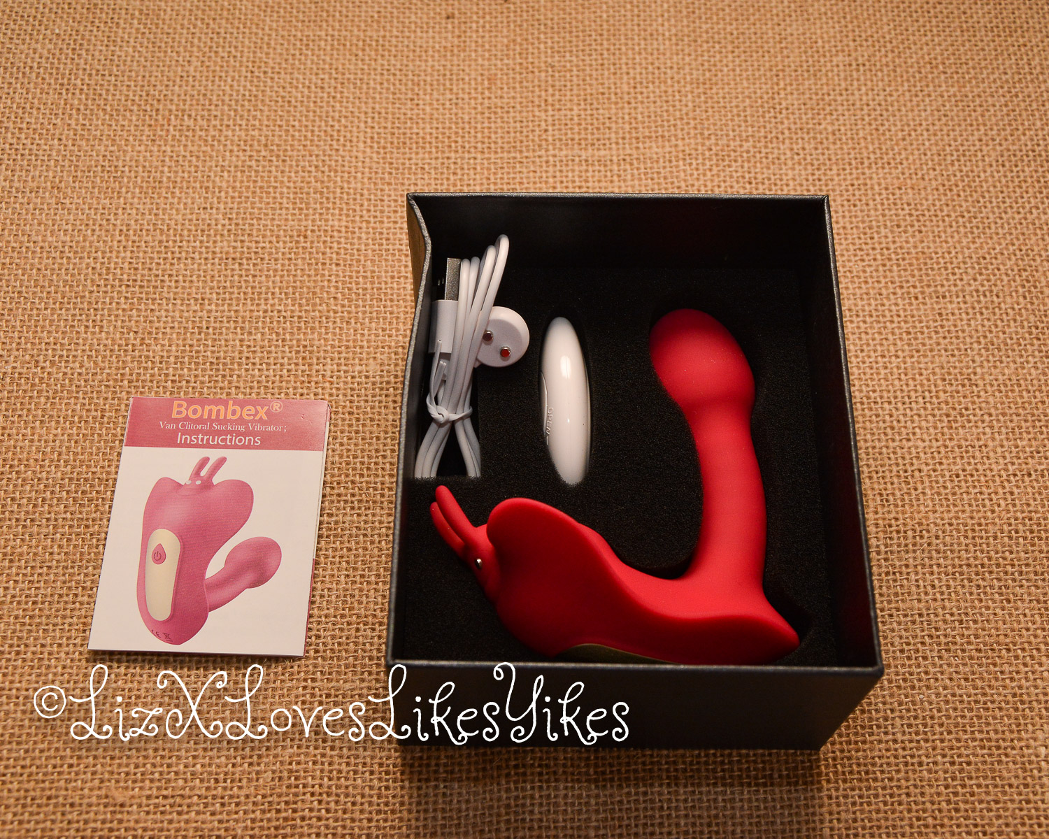 The Butterfly Desire Vibe pro by Bombex comes delivered in a small black box. It doesn’t say anywhere what treasures it holds inside. Once you lift the lid, you find the pink toy, its white remote control and the manual.