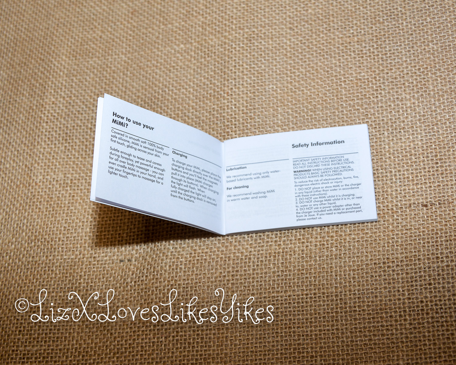 Once you open the box, it still looks and feels like a high-quality product. The vibrator has its own part of the box but isn’t wrapped in extra plastic, which I applaud. In the box are also a manual, a leaflet about JeJoue and a charging cable. The only thing missing is a storage pouch. The manual is pretty minimal. It only tells you to clean the product properly before the first use and after every use. It also says you can hold the Mimi in your hand for lighter stimulation while you stroke yourself or your partner with your fingers. There are no illustrations with the text nor a description of which button does what. The toy has only three buttons, so it’s pretty self-explanatory.