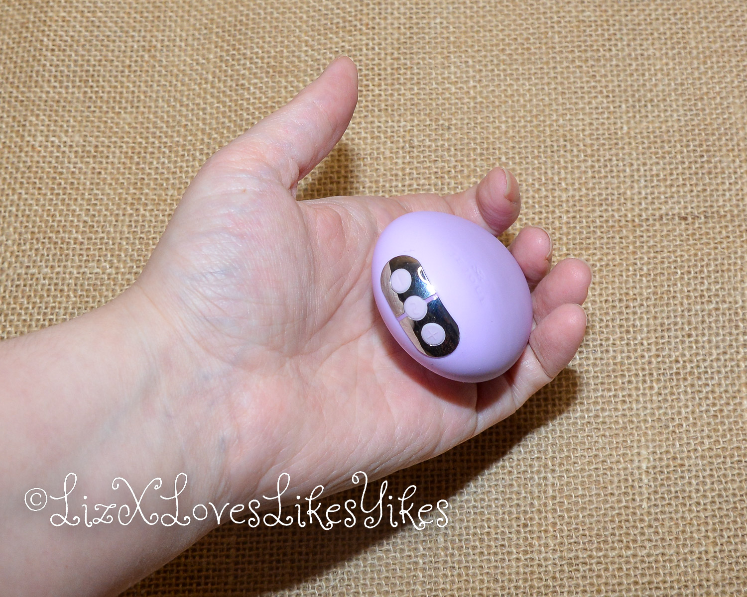 The plus button turns the vibrator on and increases the strength of the vibrations. The minus button turns the toy off and diminishes the power of the vibrations. The squiggly button in the middle cycles through the seven different patterns. I love the small heart-shaped led you see when the toy is turned on, it’s another lovely little detail.