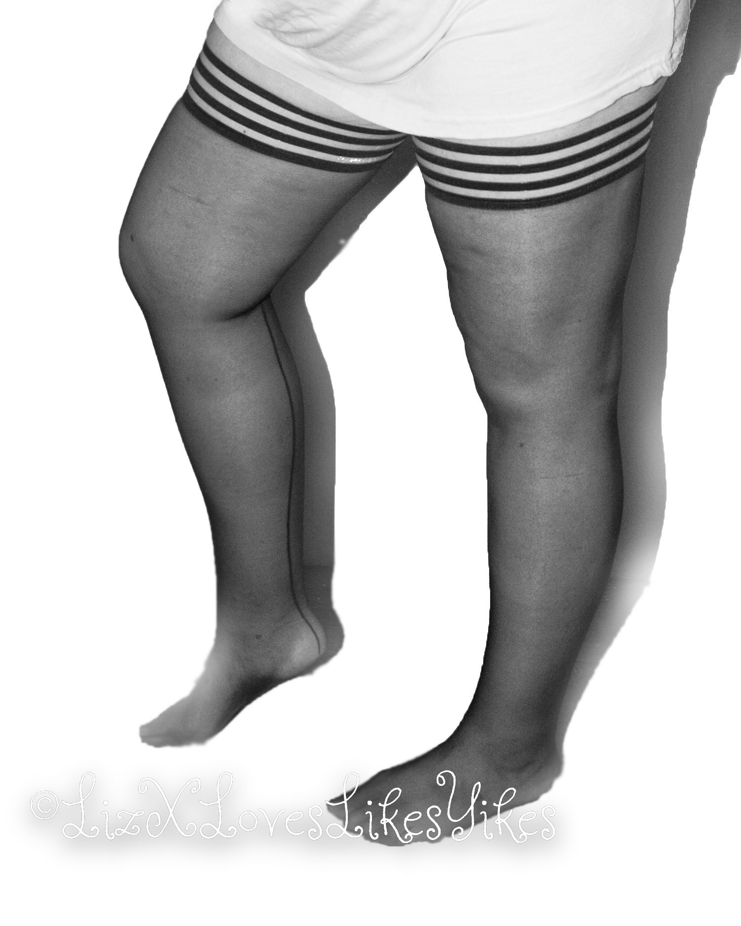 I was thrilled to have a pair of sexy thigh highs in my size and even a pair with the extra seam. They fit really well and were comfortable to wear. They fit me perfectly: not too tight but not too loose, either. I felt incredibly sexy wearing them, and my husband loved seeing me in them, both for how I looked and how I held myself. It was definitely a positive experience.