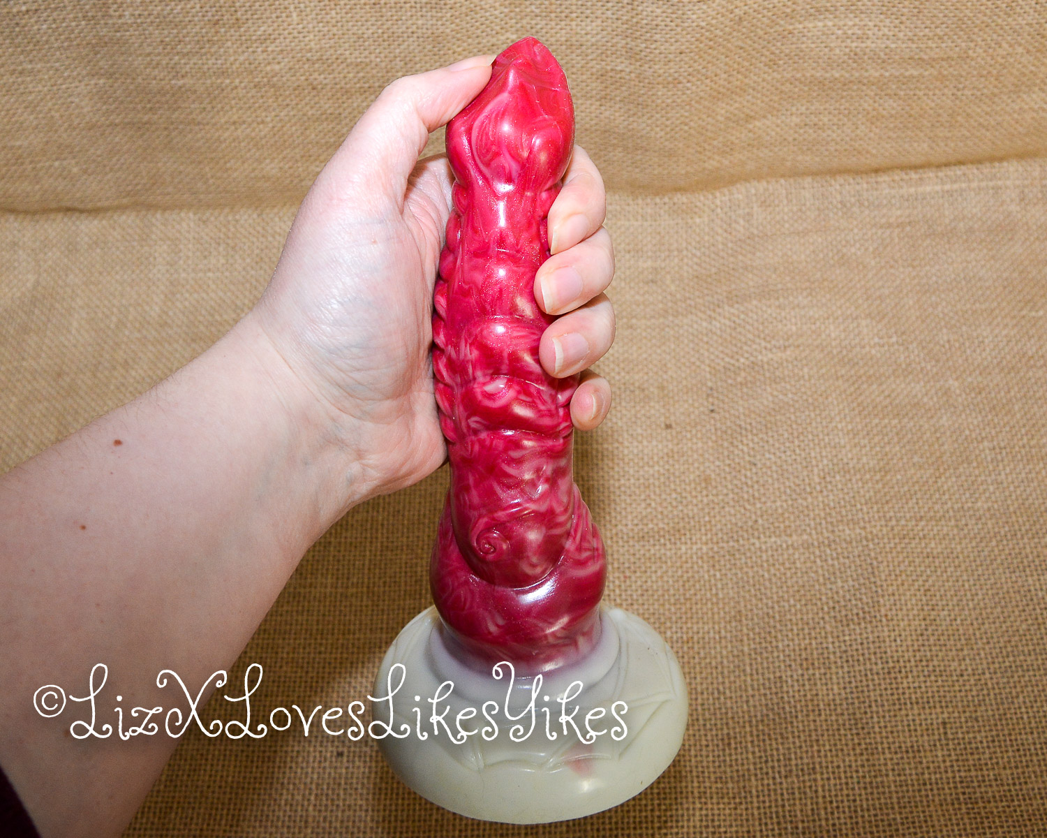 The shape and material are magnificent. Since it was inspired by a fantasy character, I can’t say whether it’s true to form. The dildo certainly looks like a shape I would love to get to know better. Let’s take a look at the specifications.