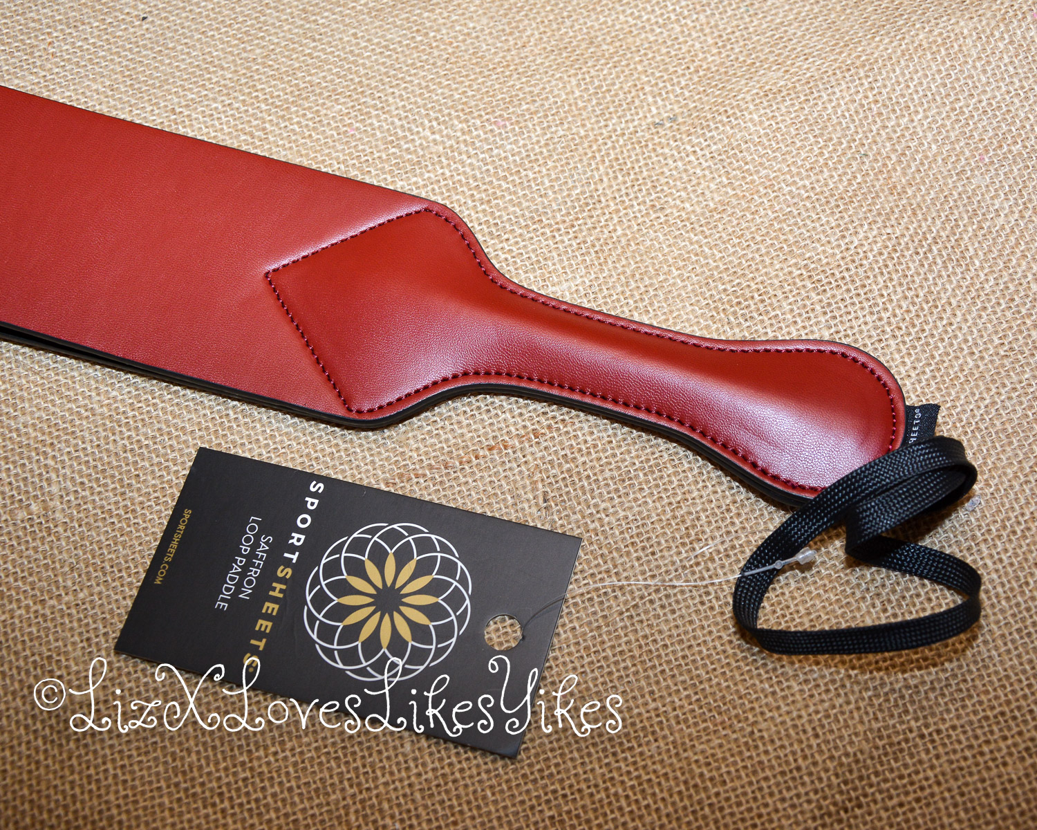 I love spanking equipment in all shapes and sizes and have used a similar slapper before. The Saffron Vegan Leather Loop Paddle does bite and sting. The only downside to this form of product is because of its design, it usually makes more noise than it hurts. The broad material moves a lot of air as it swooshes, but it doesn’t feel as impressive as it looks. That the toy doesn’t cause that much pain is not detrimental to its effect. It’s great to use as a warming-up tool or for those who aren’t into intense pain stimulation.