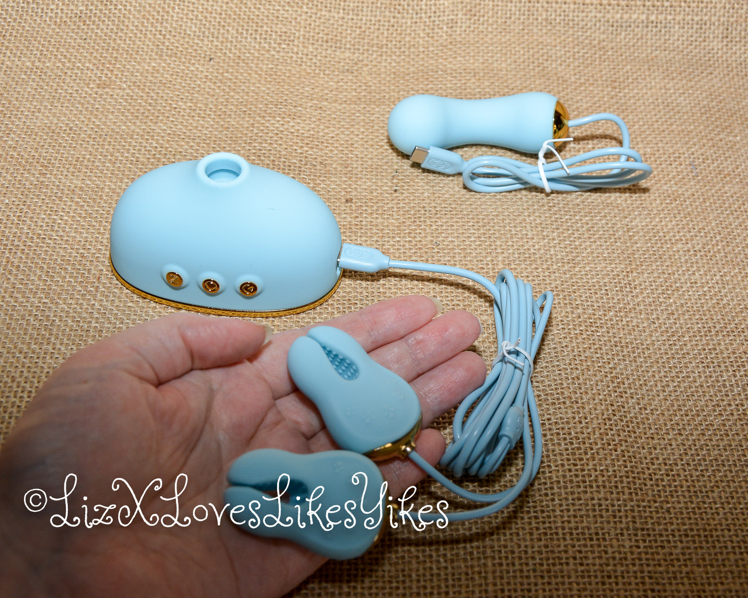 They have tiny silicone nubs on the inside for gripping, and I must say they are one of the most comfortable clamps I have ever tried. I briefly turned on the vibrations, which was too much for me, so I pulled the plug and switched back to the receiver. With the suction toy on my clit and the receiver next to it, I reached my orgasm. It was definitely a pleasant and fun experience.