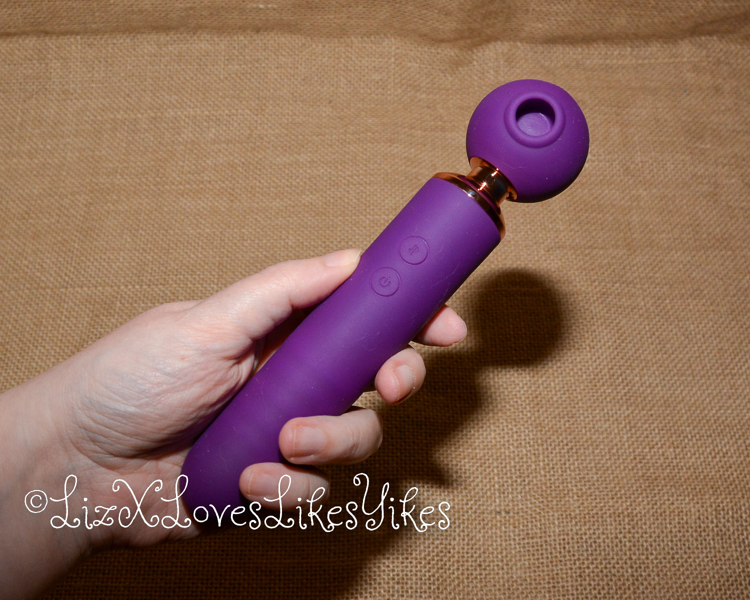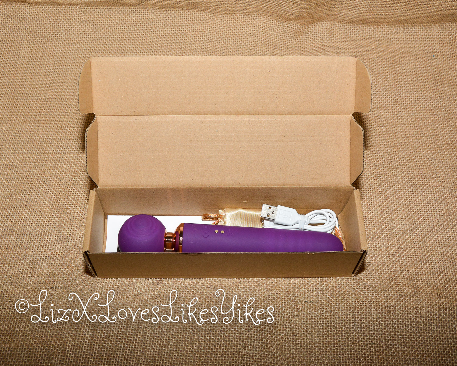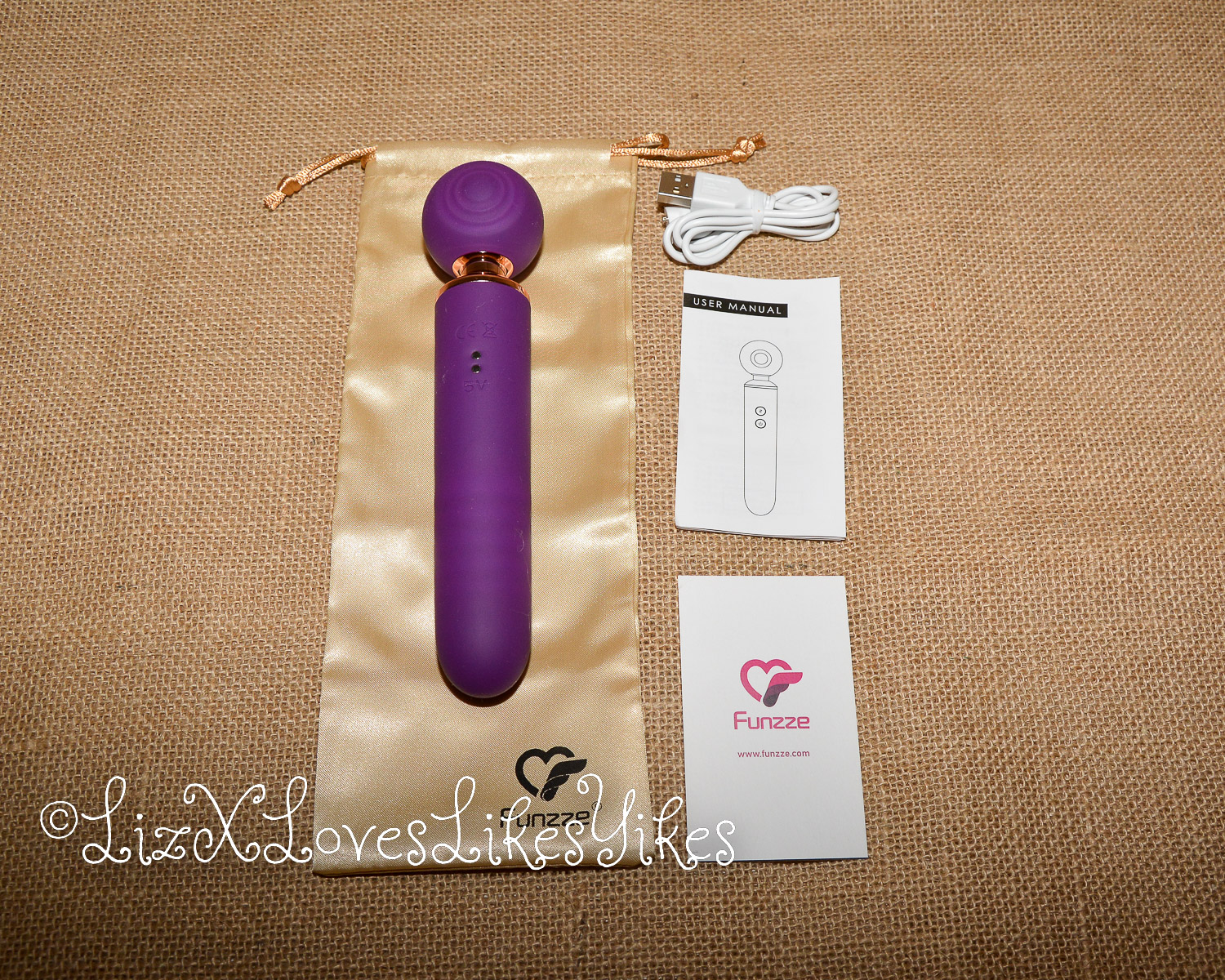 To say that the 3-in-1 Sucking & Flapping Thrusting Vibrator by Funzze.com comes delivered in a blank box would be an understatement. The box it comes in is made of a blank carton material. It says absolutely nothing about what’s inside. Once you lift the lid, you see the vibrator, in my case purple, the manual, a Funzze business card, a charging cable and a storage pouch. This vibrator is magnetically charged. The toy is made of premium silicone that is non-porous and phthalate free. The vibrator is IPX6 waterproof, and with its less than 50 Decibels not really whisper quiet. I wouldn’t use it if I didn’t want to be overheard.