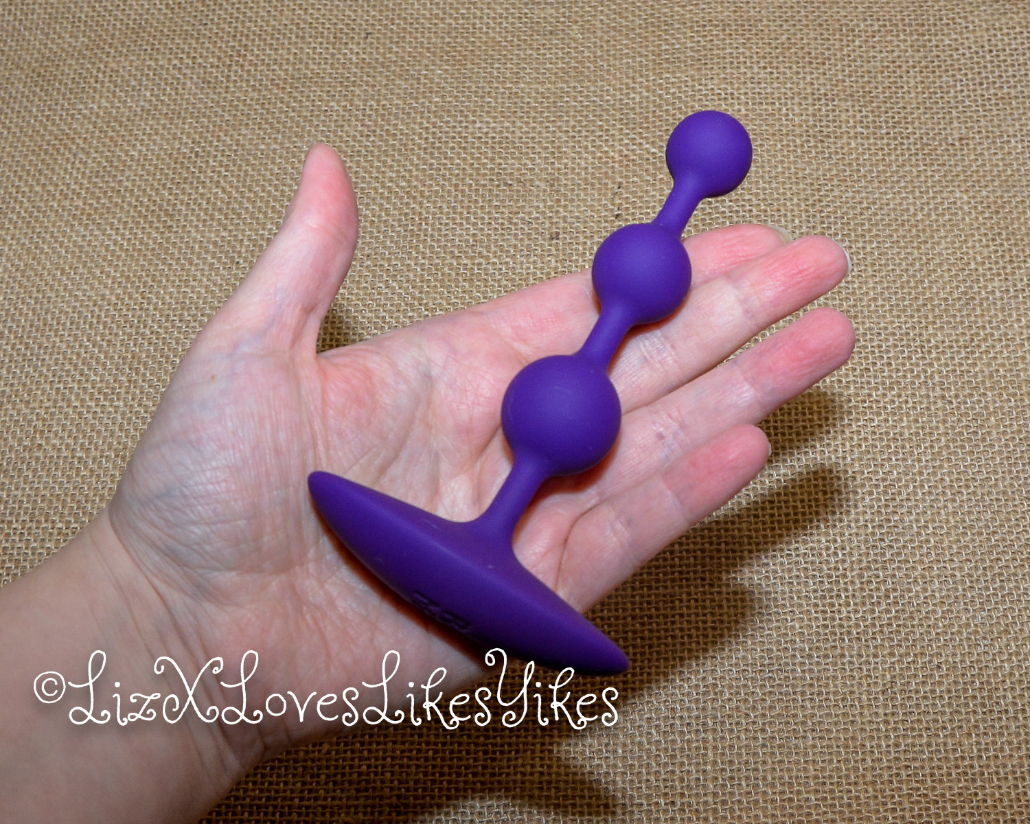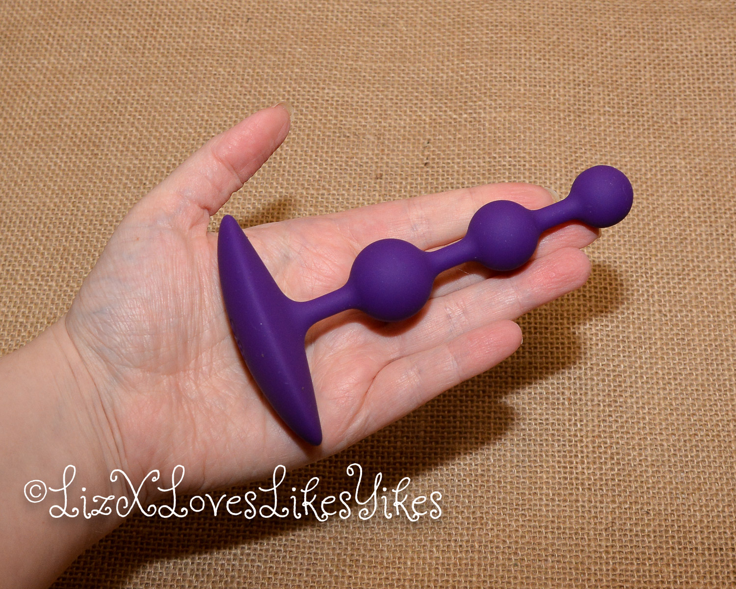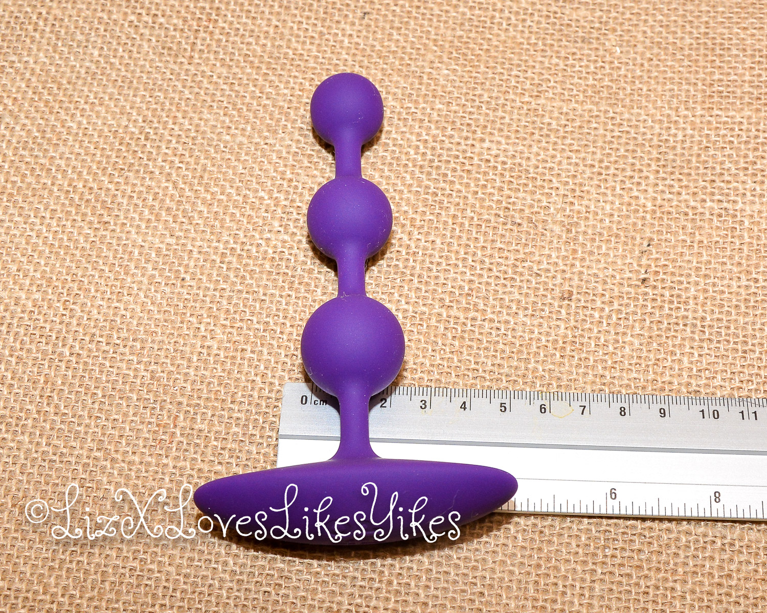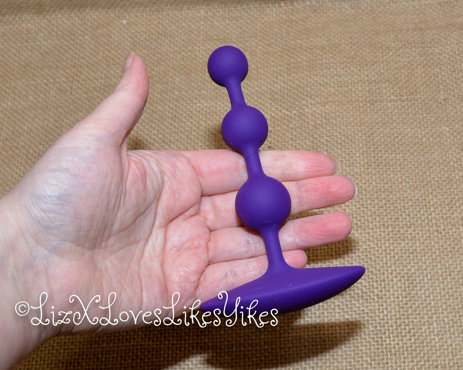 The Amp is a string of anal beads with a flared base for extra safety. The product is purple, and the material feels sturdy and decent. The flexible form of the product, as described, makes it easy to use, and the size is doable for most beginners, with only three beads and a maximum size of three centimeters. The smallest bead is around two centimeters, and the Amp measures 13 and a half centimeters in total length. Overall, the Amp is a fun and safe product that comes with a suitable packaging and manual.