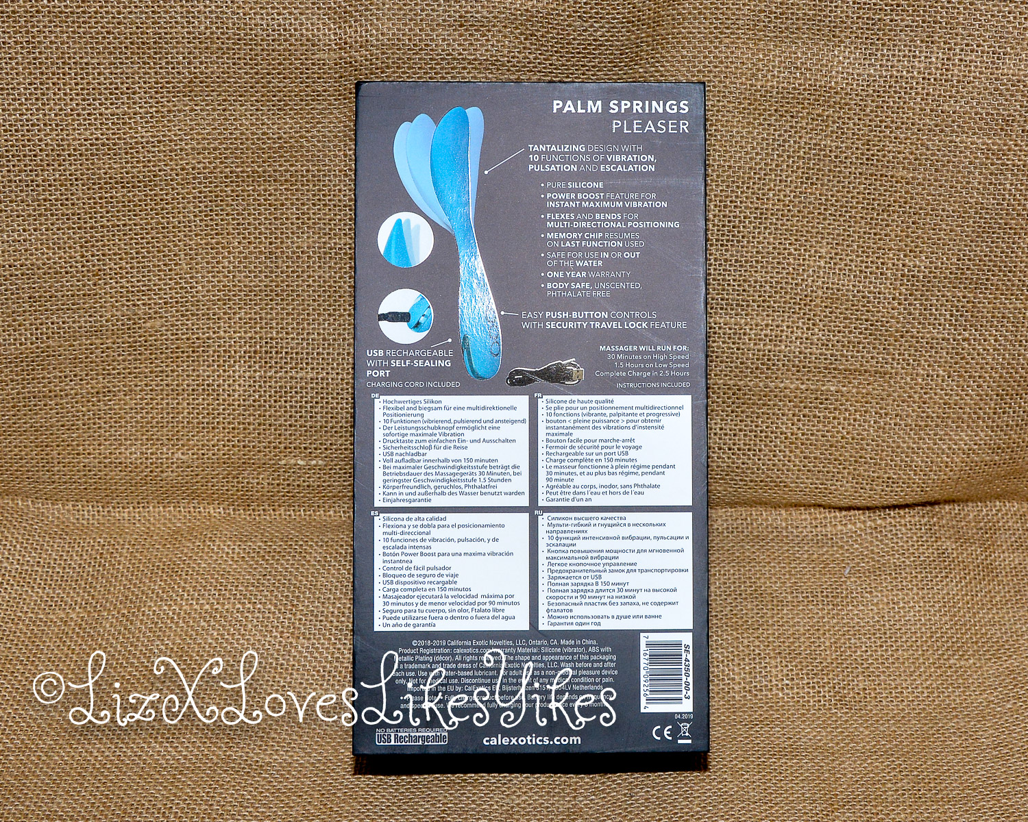 I love unique toys with different designs and features. The CalExotics California Dreaming Palm Springs Pleaser Flexible Vibrator is one such toy: it’s flexible. Phallus-shaped vibrators are the standard and often do exactly what they were designed to do, but sometimes, you need a flexible toy when playing around in different positions. Or rather, I wouldn’t have come up with it, but I’m glad CalExotics did. So when Bettys Toy Box allowed me to test one, I was more than happy to comply.