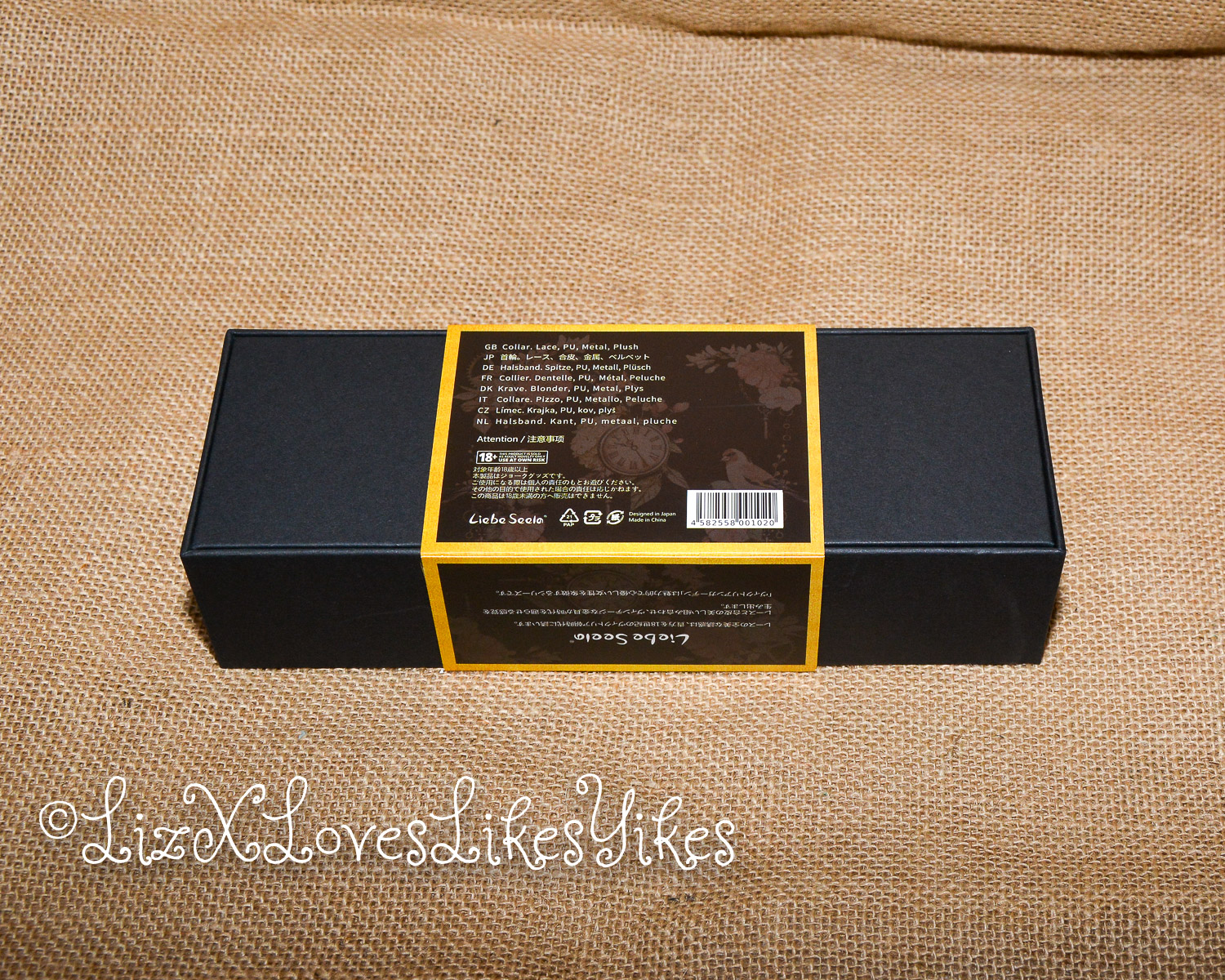 Unlike the other products I have reviewed for Liebe Seele, this collar with chainset is not made of leather, but it’s a vegan alternative instead. Now, I do not believe that your accessories have to be leather for them to be ‘true BDSM.’ Anyone knows a simple scarf or tie can be just as efficient. The only danger is that it can soon look cheapish. But from the first inspection, the Liebe Seele quality is evident. The collar feels sturdy from the moment you take it out of the box. Let’s look at the details.