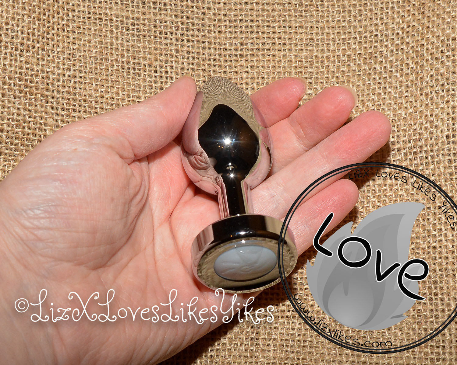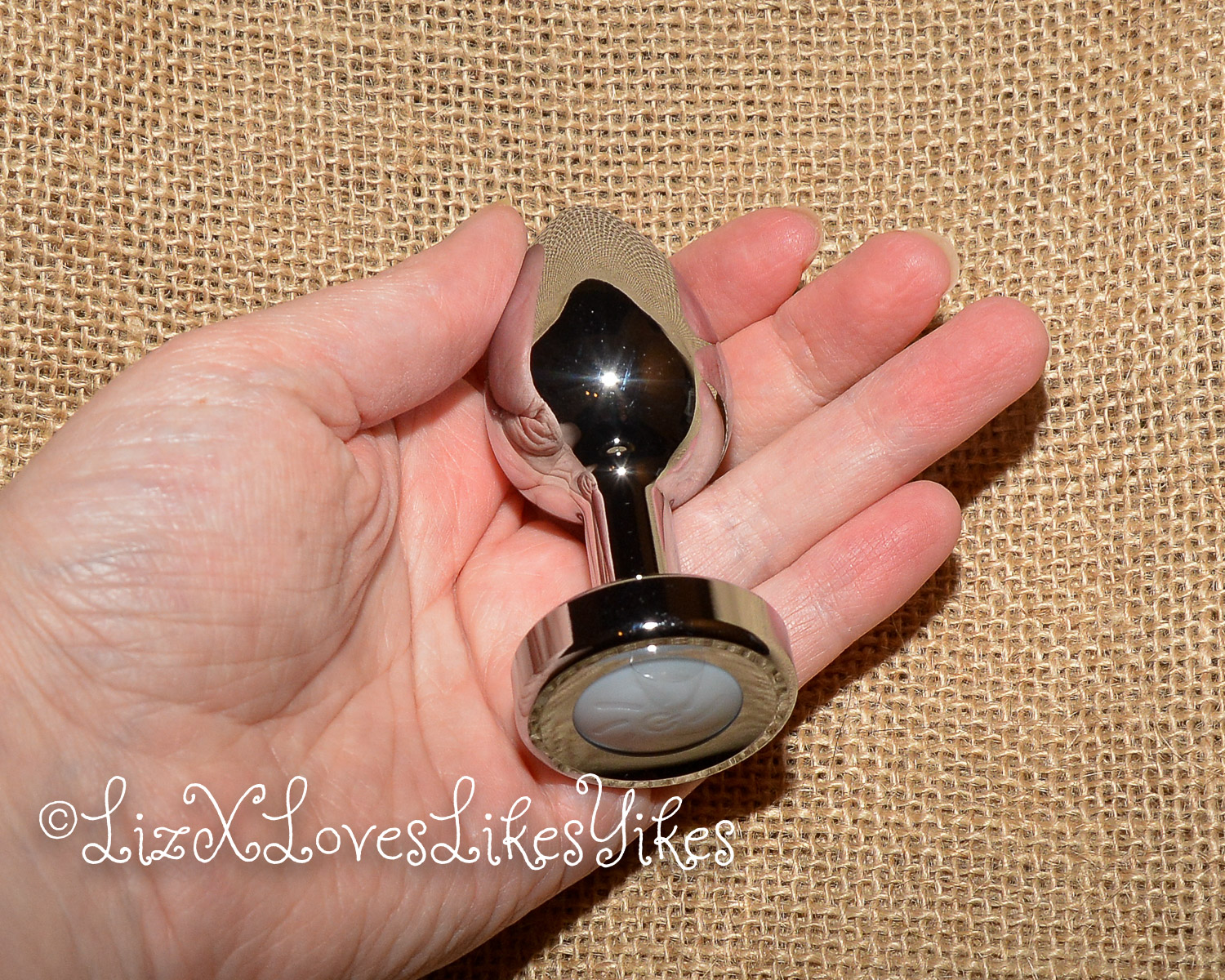This aluminium buttplug is pleasantly shaped, and I found it easy to insert. It’s aluminium, so it doesn’t budge one bit, but that’s part of the game. Speaking of game, my husband and I only tested the toy together, whereas this toy would be perfect for use in a larger group if that’s your thing. We had many laughs with it, and yes, part of it is humiliation play. Since we’re in a D/s together, that is not a rare happening. But it’s a peculiar feeling when your husband asks you to ‘shine a light’ to have to turn around and show him your bum.