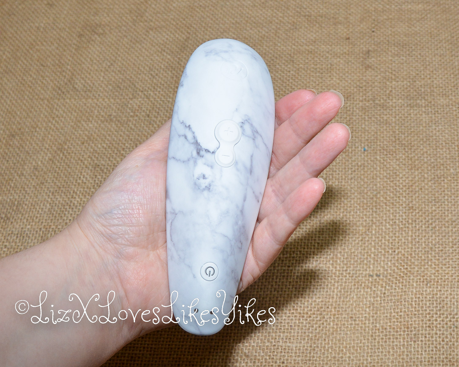 The Womanizer Classic 2 is 15 centimetres long, 5 centimetres wide, and 3 and a half centimetres in height. The Womanizer has three buttons. One to turn it on and off, a minus button and a plus button to change the intensity of the pleasure air. There are ten intensity levels.