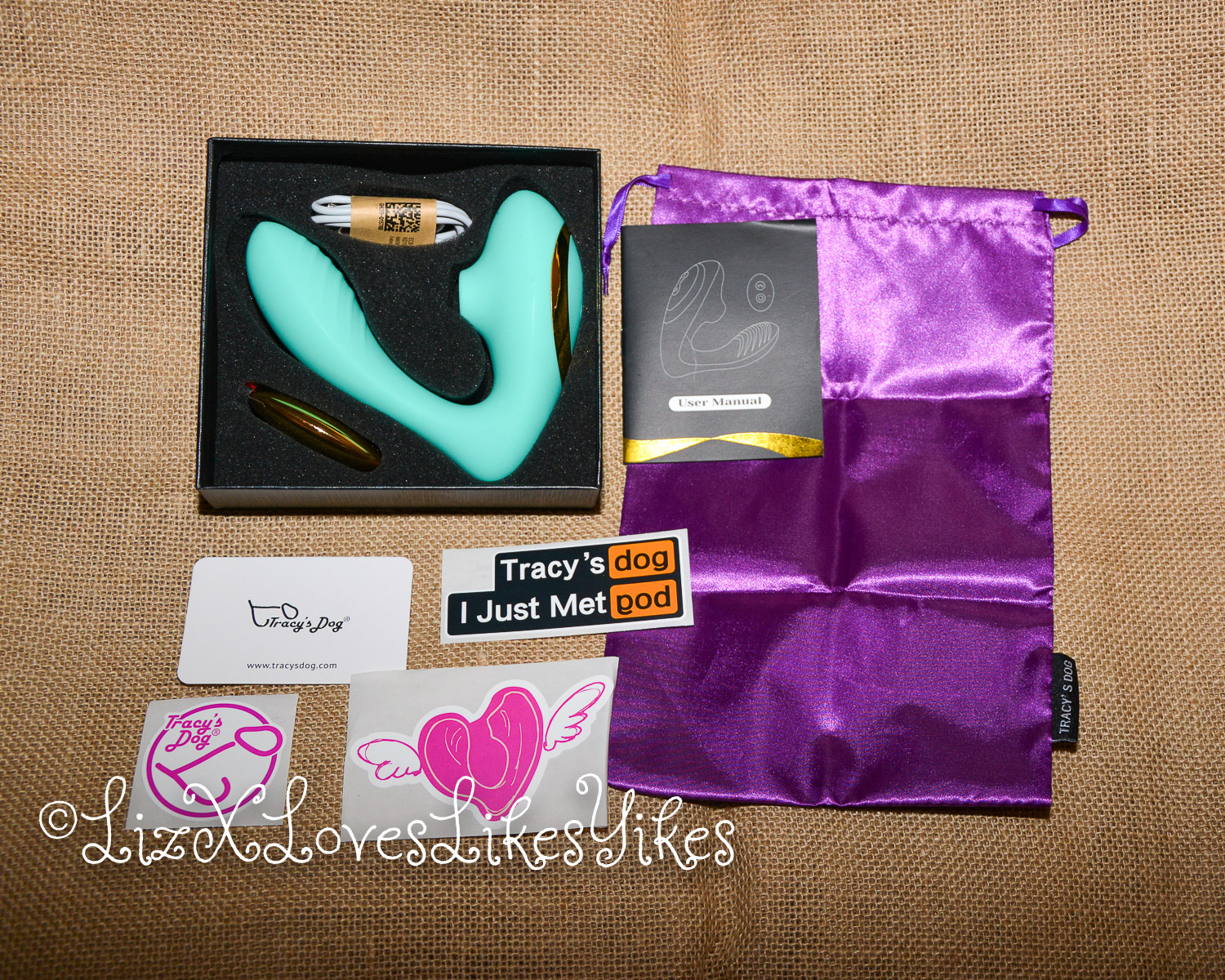 The OG Pro2 Sucking Vibrator by Tracys Dog comes delivered in a small black box. When I opened the package, it brought the biggest of smiles to my face. There are stickers inside! If there’s one thing that can make me happy, it’s stickers ๐